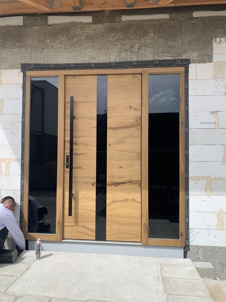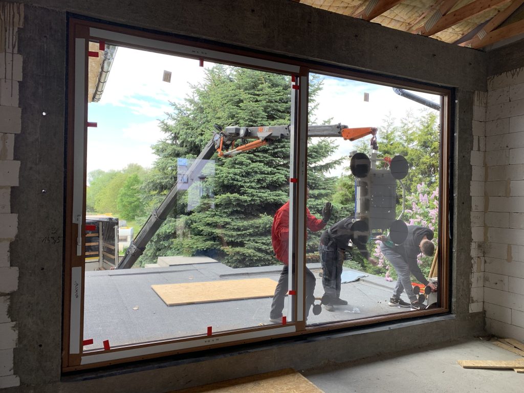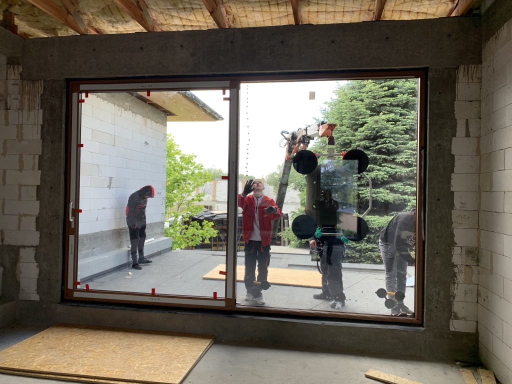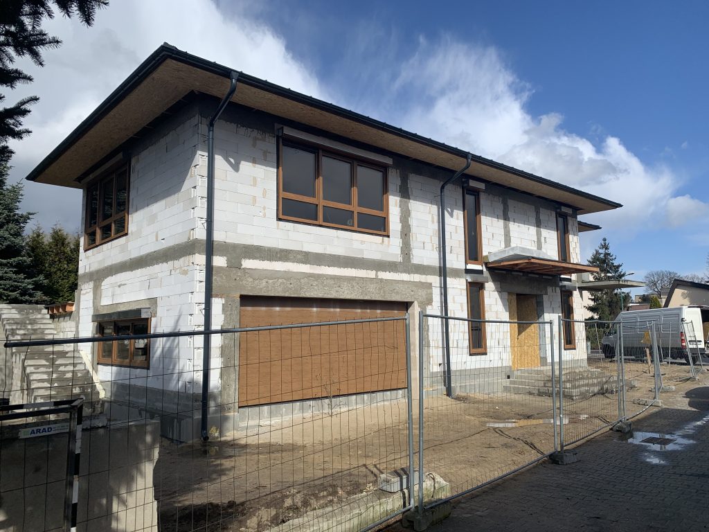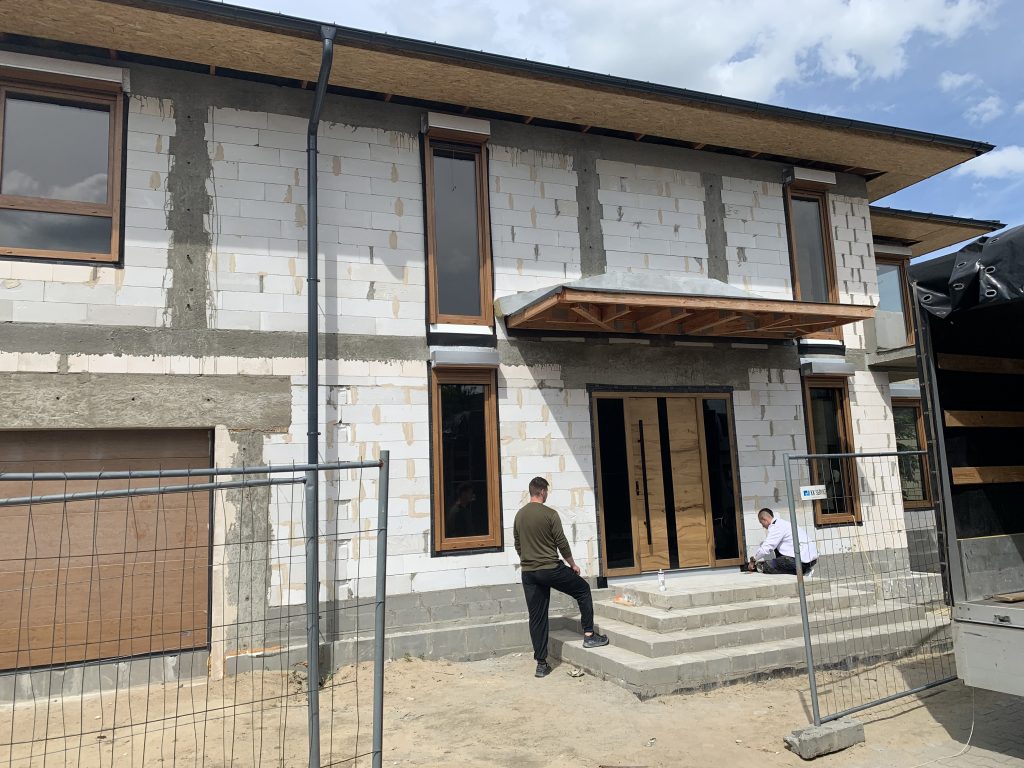 Montaż okien Veka Softline82, drzwi aluminiowych HST, rolet zewnętrznych oraz bramy garażowej.