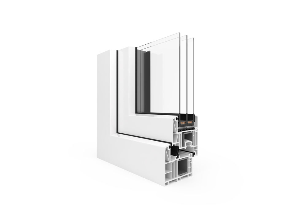 Optymalne połączenie innowacyjnej technologii oraz najlepszych parametrów ochrony cieplnej właściwych dla budownictwa energooszczędnego. Okna wykonane w systemie BluEvolution 82 już w standardzie wyposażone są w dwukomorowy pakiet ciepłych szyb o bardzo niskim współczynniku izolacyjności termicznej. Ogromny atut stanowią same profile, które nie tylko wykonane są z wysokiej jakości PVC, ale przede wszystkim stanowią doskonały izolator termiczny, którego gwarantem jest sześciokomorowa budowa profilu oraz potrójny system uszczelnienia.
